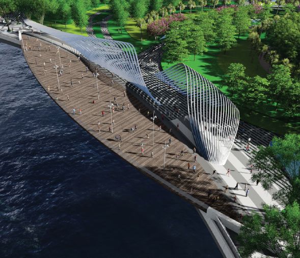 寶安海濱文化公園占地面積27.61萬平方米;包括公園(用地面積25.87公頃)及公園北側海府路等部分城市道路(面積約為1.74公頃),方案由世界著名景觀事務所SWA和美國LLA建筑設計公司完成,建成后將成為前海片區一張靚麗的名片。